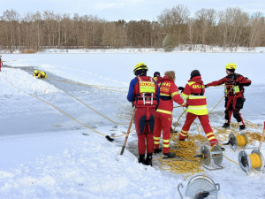Um im Ernstfall schnell, sicher und professionell helfen zu können, wird am Silbersee im Ortsteil Vorwerk der Notfall realitätsnah geprobt. Ausgerüstet mit wasserdichten Schutzanzügen, Sicherungsgeschirr und speziellen Rettungshilfsmitteln trainieren die Einsatzkräfte die Rettung von eingebrochenen Personen – unter Bedingungen, wie sie jederzeit Realität werden können.